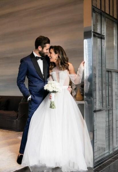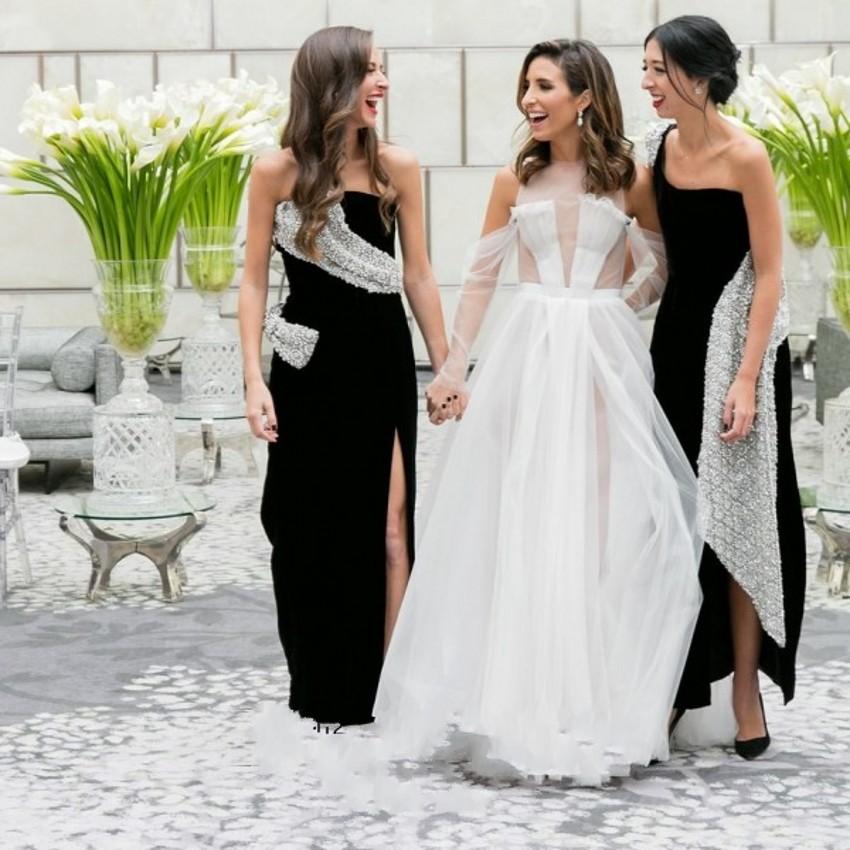 Unique Design Lace Wedding Dresses Jewel Off-Shoulder 3/4 Long Sleeve Illusion With Sashes Bridal Dresses Popular Wedding Gowns