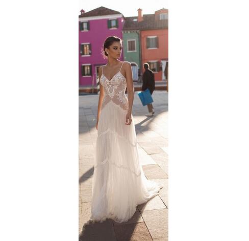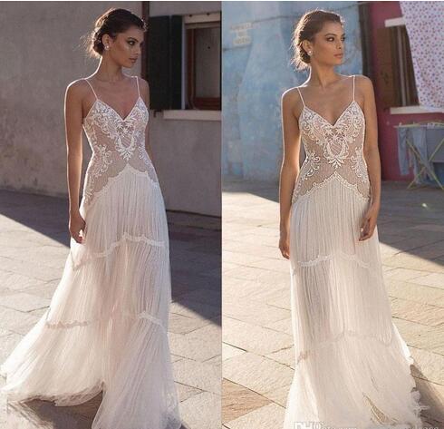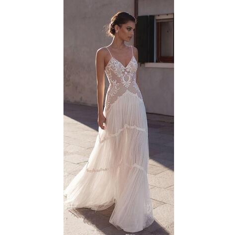 A-Line Wedding Dresses 2019 Sexy Spaghetti Straps Sheer Neck Backless Sleeveless Lace Appliques Country Bridal Gowns Vestidos De Noiva
