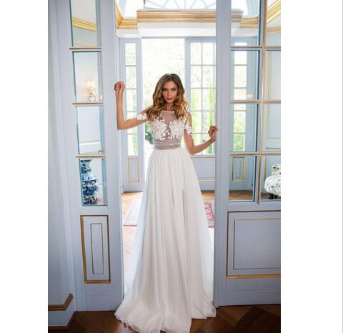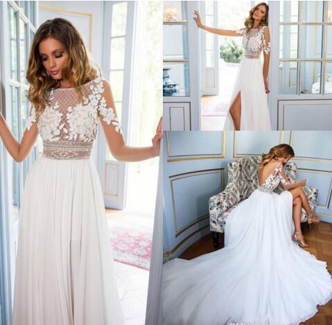 Stunning 2019 Beach Bohemian Wedding Dresses Sheer Long Sleeve Lace Vestidos de Novia Side Split Summer Wedding Gowns Bridal Dress