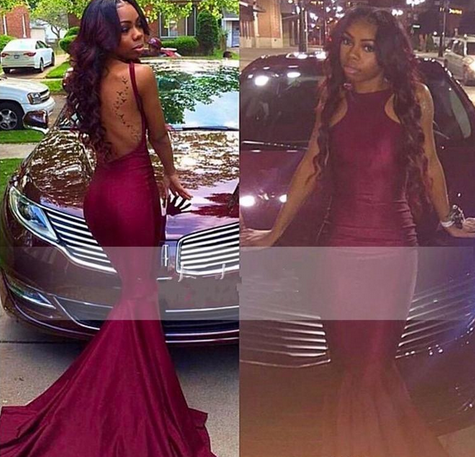 Simple Hot Burgundy Prom Dresses 2K18 African Americans Mermaid Halter Neck Sexy Open Back Long Party Dresses Evening Gowns