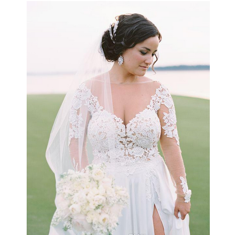 Modest Plus Size Bohemian Wedding Dresses Long Sleeve Sheer Neckline A Line Beach Bridal Gowns Chiffon Side Split Wedding Dress