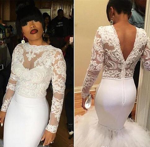 Modest White African Prom Dresses Mermaid Applique V Neck Back Puffy Skirt Black Girl Formal Dress Long Sleeve Prom Gowns