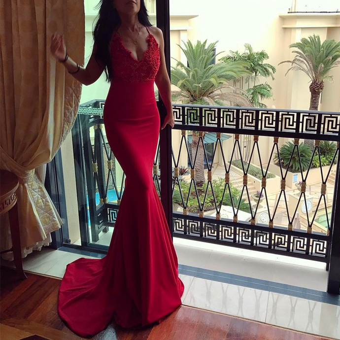 Long Mermaid Prom Dress, Red Prom Dresses, Sexy V Neck Prom Dresses, Open Back Prom Dress, Long Evening Dress, Long Formal Dress