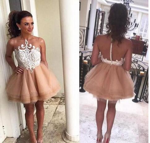 2021 New Short A-Line Homecoming Dresses Lace Applique Mini Tiered Tulle Jewel Neck Girls Party Dresses Sleeveless Cocktail Party Dresses