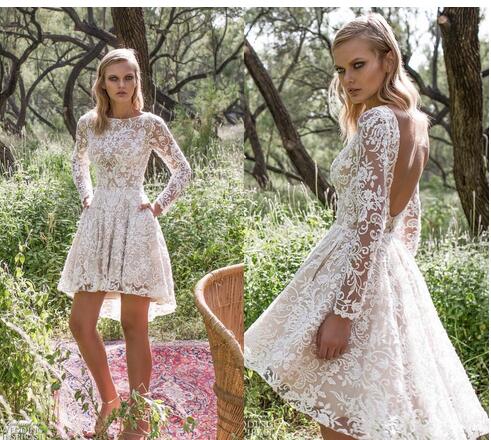 Short Lace Wedding Dresses Glamorous A Line Backless Sexy Sheer Long Sleeves Garden beach boho high low Limor Rosen Bridal Gowns