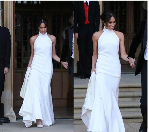 Elegant White Wedding Dresses Royal Wedding Gowns Halter Neck Satin Wedding Recept Dress