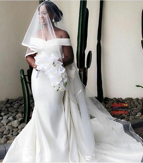 Simple Elegant Mermaid Off the Shoulder Wedding Dresses Sleeveless African Girl Black Girl Bridal Gowns