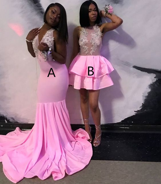 Pink Prom Dresses Sliver Appliques Sleeveless African Girl Black Girl Prom Gowns Evening Dresses