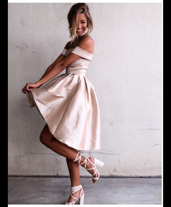 A-Line Off-the-Shoulder High Low Satin Prom Homecoming Dress