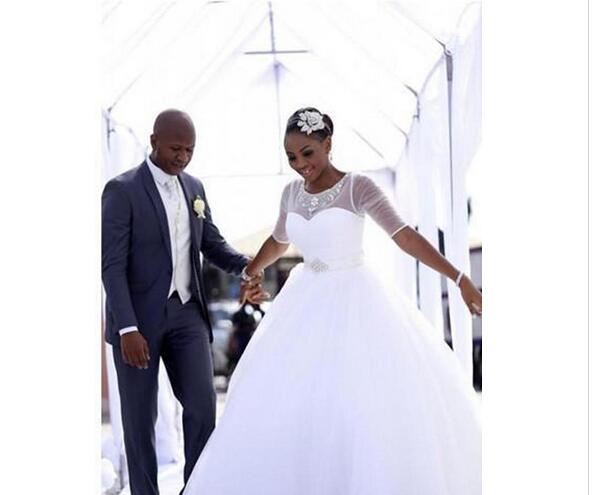 Plus Size 2019 Arabic Vestido de Novia Ball Gown Wedding Dresses with Sleeves Jewel Neck Beads Sash Illusion Tulle Bridal Ball Gowns