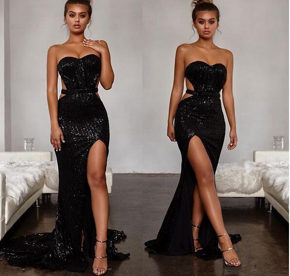 Black Mermaid Prom Dresses Sweetheart Sequins Lace Evening Formal Gowns