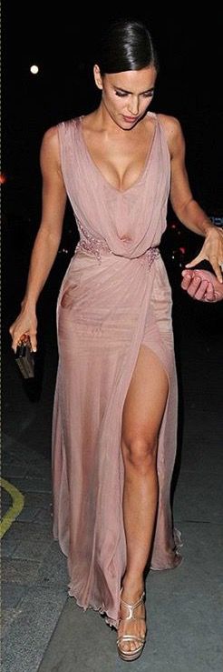 Inspired by Irina Shayk A Line Chiffon Celebrity Dresses Halter Appliques Side Slit Prom Dresses Evening Formal Gowns