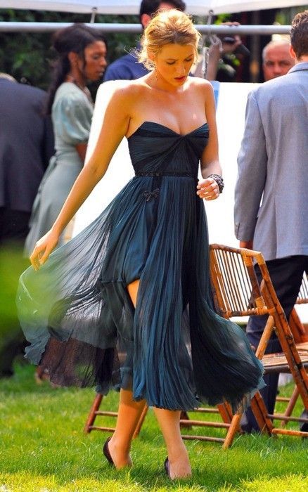 Inspired by Blake Lively Celebrity Dresses Navy Blue A Line Chiffon Sweetheart Pleat Prom Dresses Evening Formal Gowns