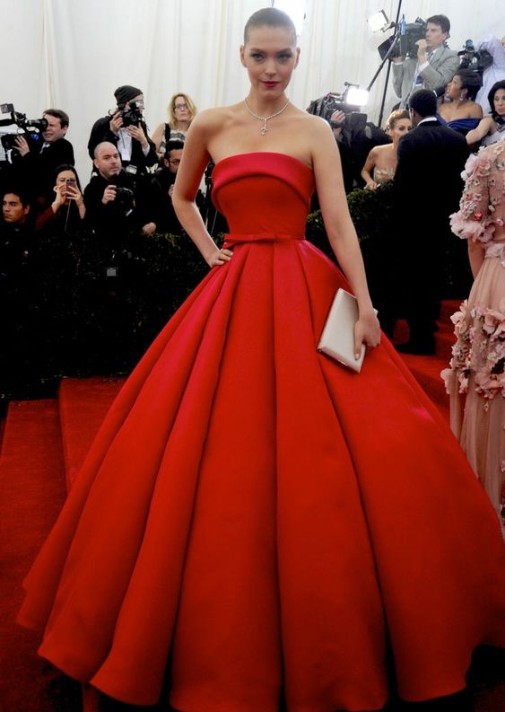 Inspired by Arizona Muse Celebrity Dresses Red Ball Gown Satin Strapless Puffy Evening Prom Dress