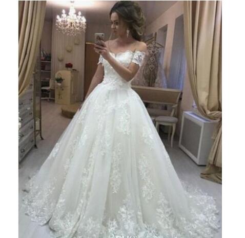 Vintage Lace A Line Wedding Dresses Off The Shoulder Short Sleeves Appliques Modest Bridal Gowns Country Wedding Gowns