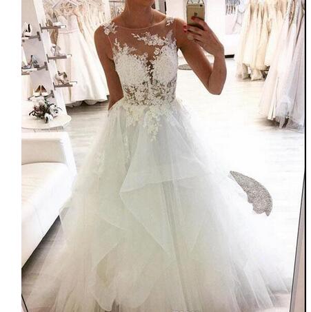 Elegant Lace Wedding Dresses Scoop Neck Beads Sleeveless Appliques A Line Plus Size Custom Wedding Gowns Formal Bridal Gown