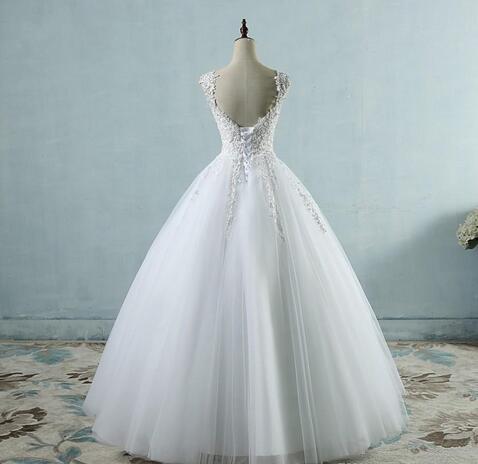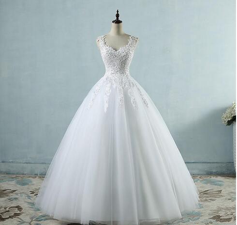Plus Size Lace Applique Beaded A-Line Wedding Dresses V-neck Sleeveless Tulle Simple But Elegant Women Bridal Wedding Gowns