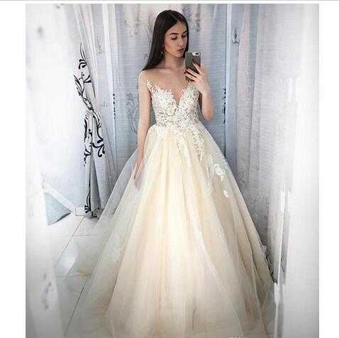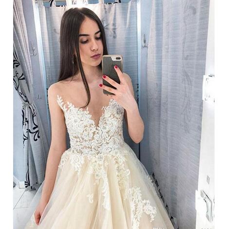 Fashion Applique Lace Wedding Dresses Scoop Neck Beads Sleeveless Made Formal Girls Custom Wedding Gowns Formal Bridal Gown