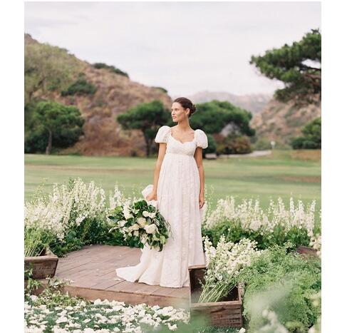Elegant White Lace Appliques Wedding Dresses Short Sleeve Appliques Sexy Back Bridal Dresses Simple Design Popular Wedding Gowns