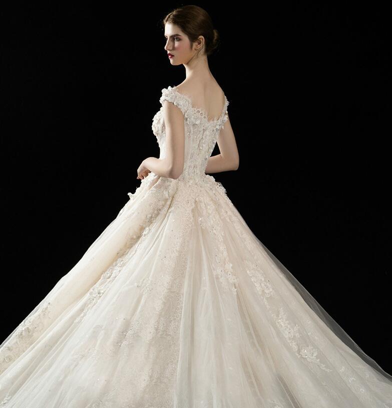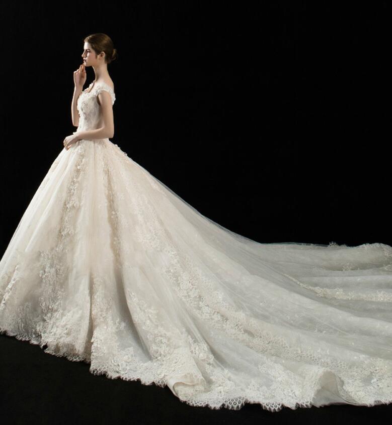Elegant A-Line Wedding Dresses V Neck Short Sleeve Lace Dresses Appliquef Lace Up Cathedral Train Tulle Wedding Gowns