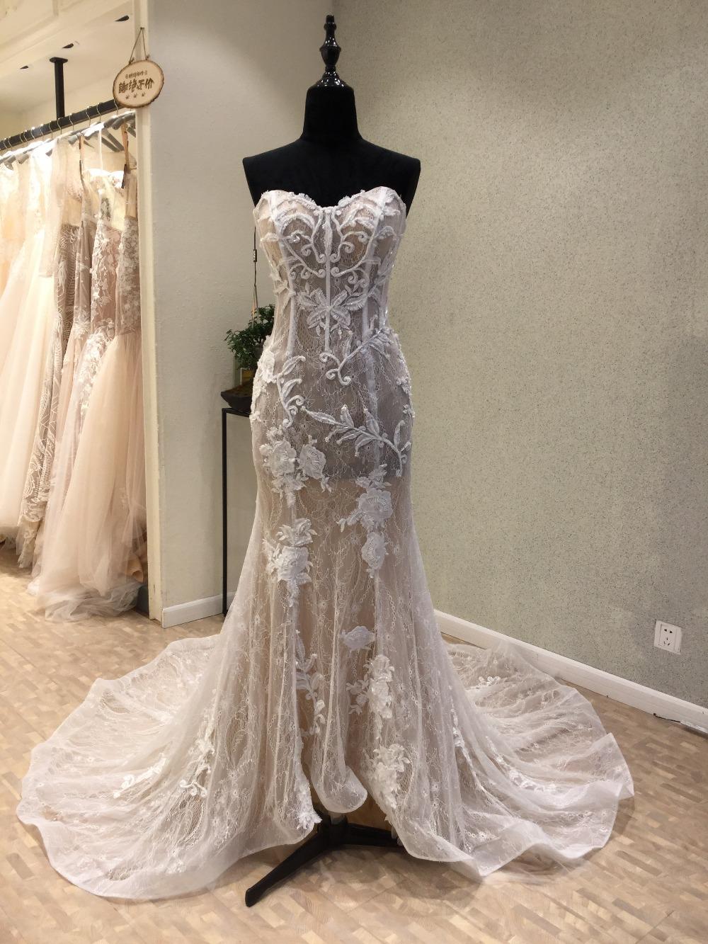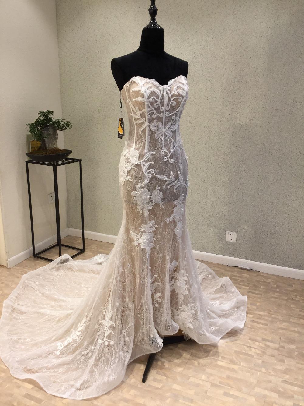 Classical Full Lace Applique Wedding Dresses Sweetheart Lace-up Back Illusion Bodice Bridal Gown Sleeveless Arabic Sexy Bridal Dresses