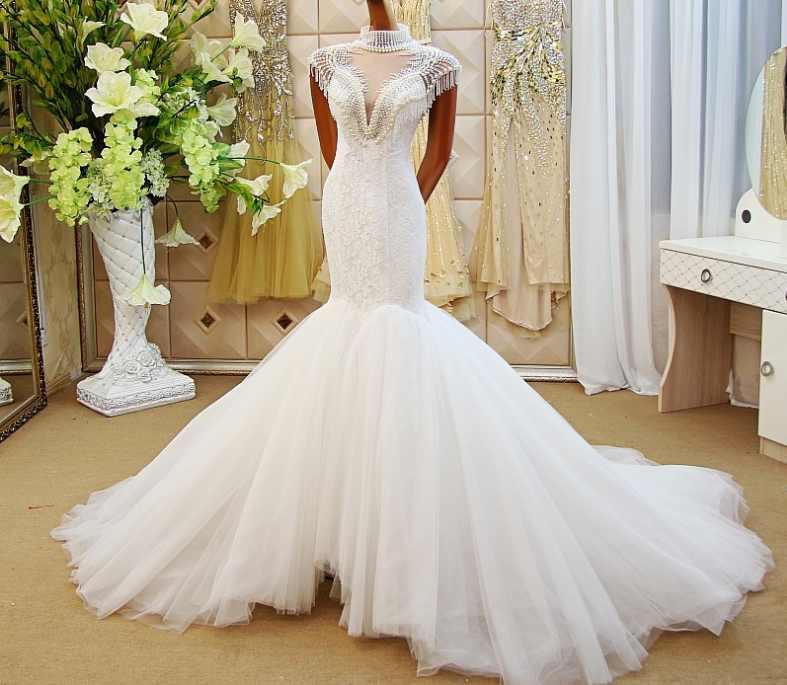 Gorgeous Mermaid Wedding Dresses High Neck Beading Lace Illusion Back With Zipper Bridal Dresses Sexy Wedding Gowns