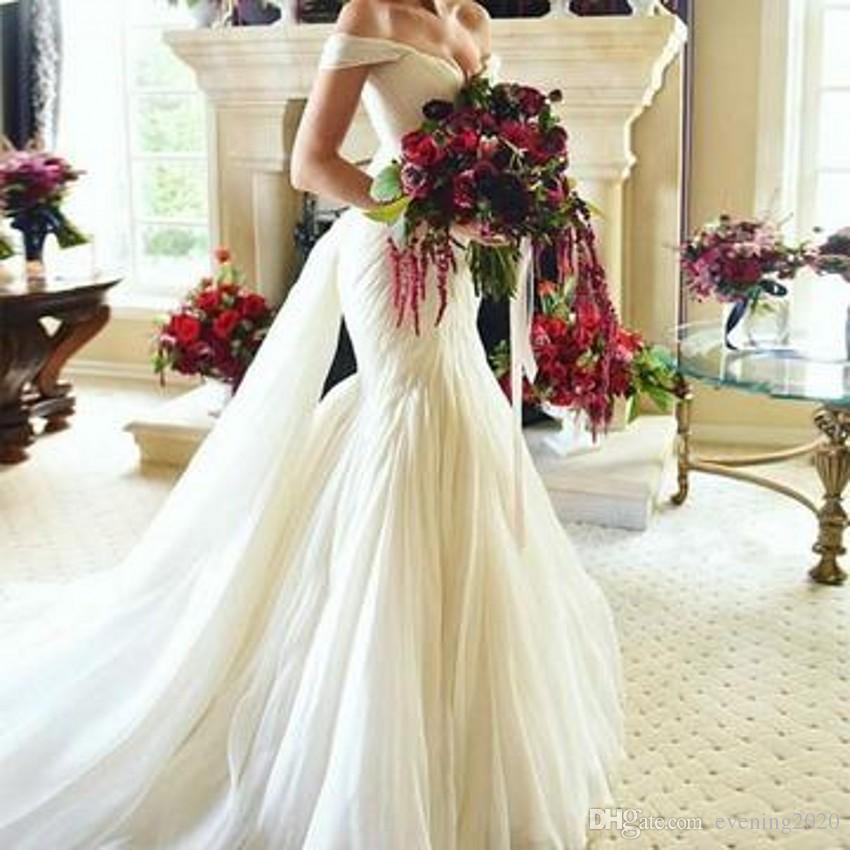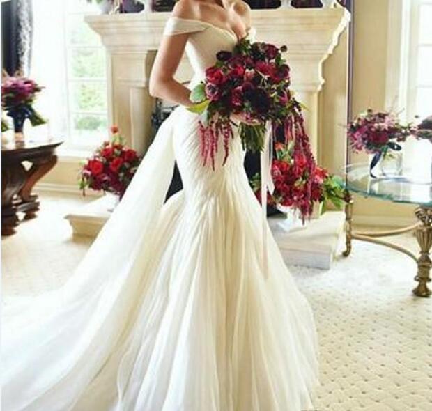 Temperament Wedding Dresses Pleats Sexy Off Shoulder V Neck Tulle Mermaid Mopping Long Section Charming Luxury Wedding Gowns