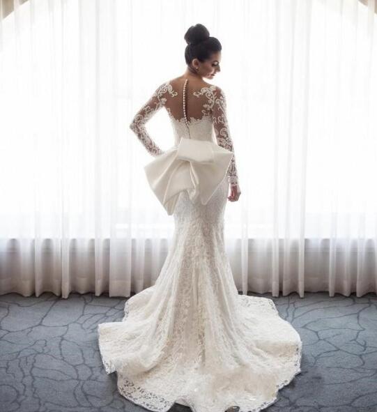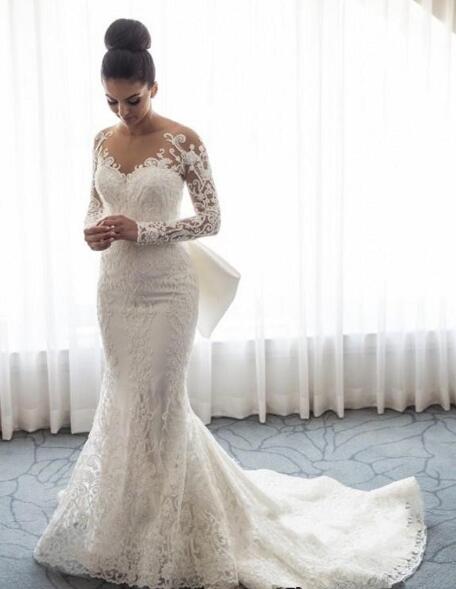 Gorgeous Long Sleeve Wedding Dresses New Fashion 2019 Mermaid Lace Bridal Gowns Mopping Long Section Noble Wedding Gowns