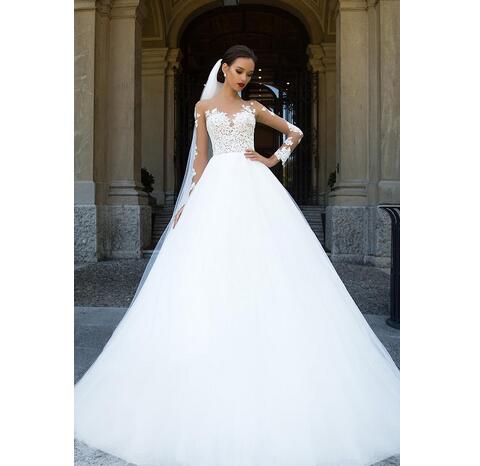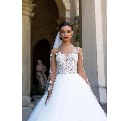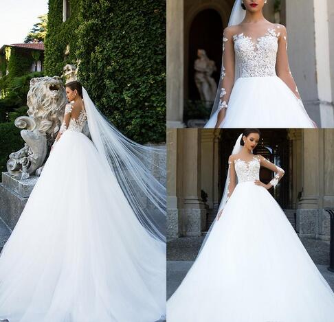 Vintage Sheer Neck Lace Wedding Dresses A Line Long Illusion Sleeves Applique Floor Length Cheap Wedding Bridal Dresses Custom