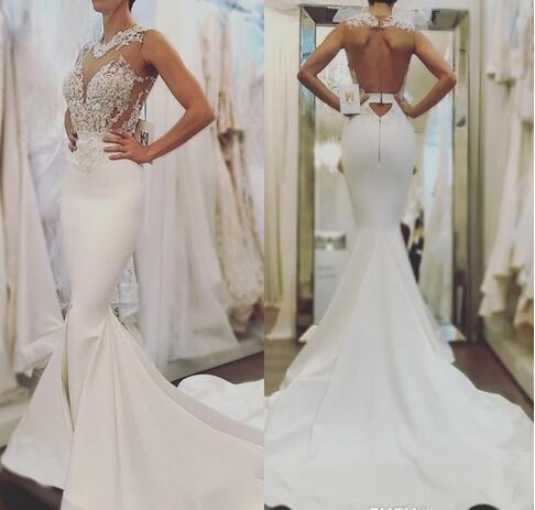 Spring Summer Bohemian Mermaid Wedding Dresses Sexy Sheer Neck Open Back Floor Length Backless Lace Applique Wedding Bridal Gowns