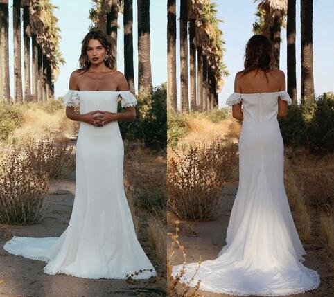 New Fashion Beach Simple Mermaid Wedding Dresses Off Shoulder Floor Length Zipper Back Wedding Bridal Gowns Custom Made