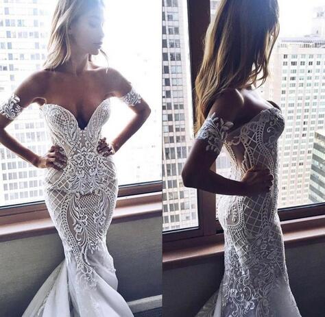 Lace Mermaid Wedding Dresses Sweetheart Tulle Applique Sweep Train Wedding Bridal Gowns With Buttons Back
