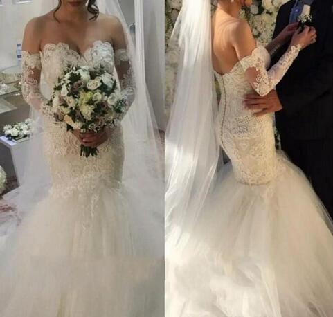 New Arrival Plus Size Mermaid Wedding Dresses Sweetheart Long Sleeves Court Train Lace Applique Wedding Dresses Bridal Gowns
