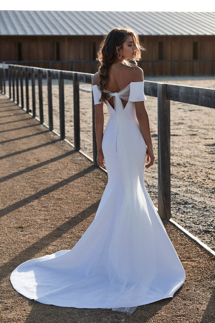 Sheath Satin Off the Shoulder Wedding Dress, Off Shoulder Satin Wedding Dresses, Simple Long Bridal Dress Wedding Gown