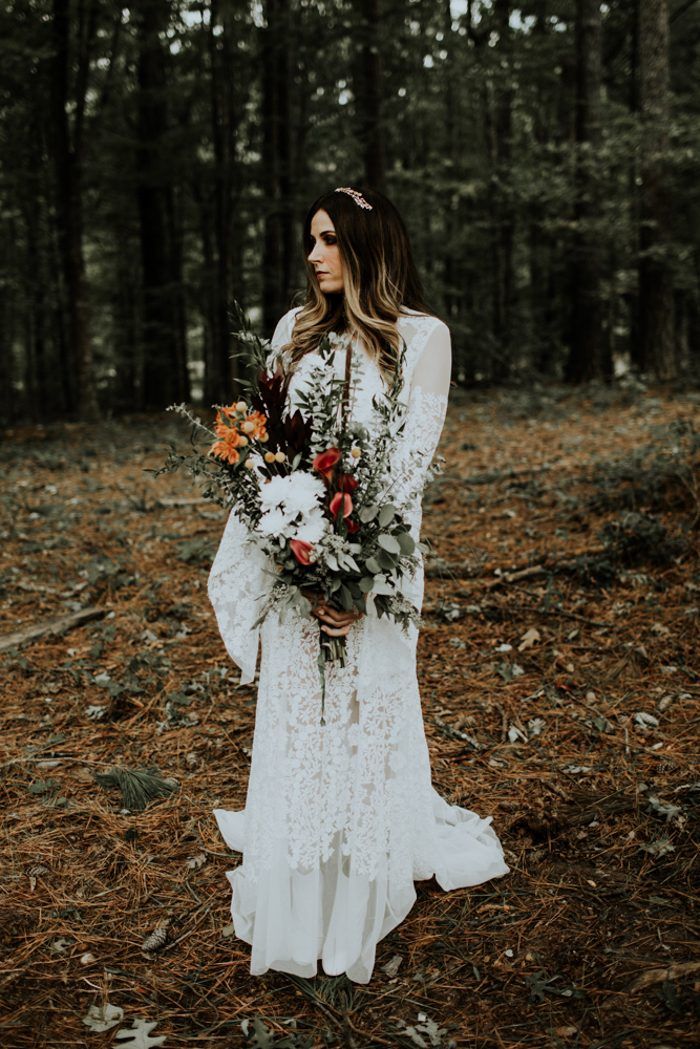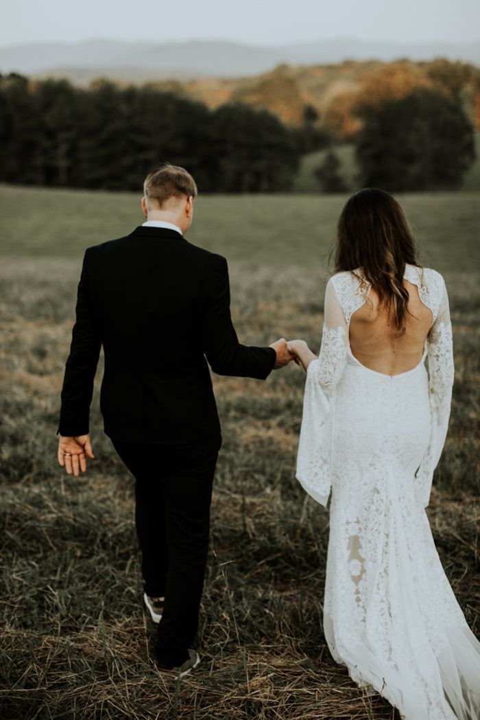 Edgy Eclectic Summit Farm Wedding Crew Neck Cutout Sheer Long Sleeve Delicate Lace Wedding Dresses Keyhole Back Bridal Gowns