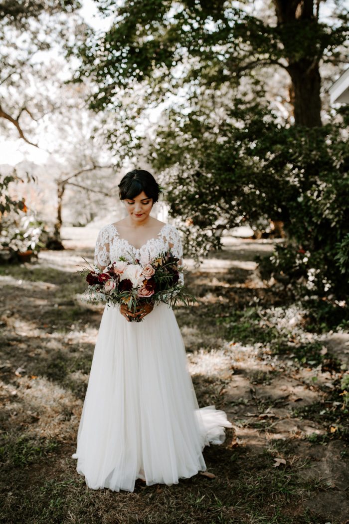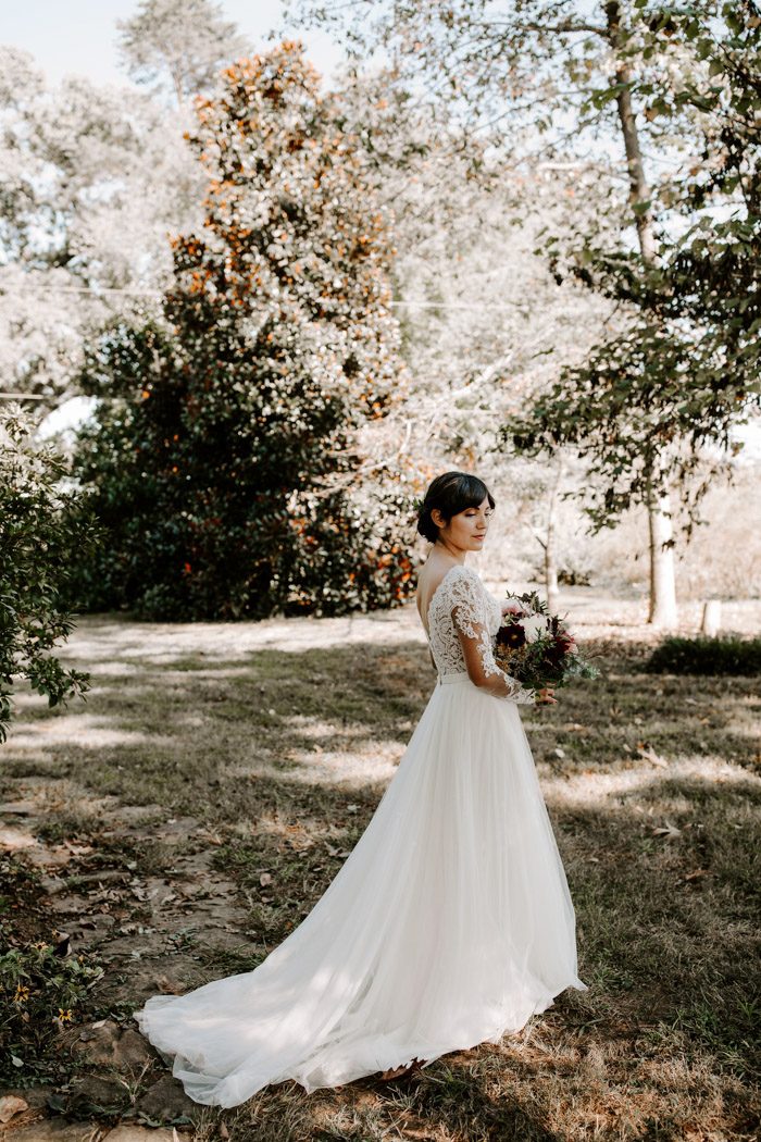 Vintage A Line Chiffon Garden Wedding Dresses Crew Neck Sheer Long Sleeve Lace Bodice Bridal Gowns