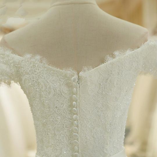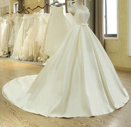 Off Shoulder Sleeveless Lace Wedding Dresses,A Line Satin Bridal Gown