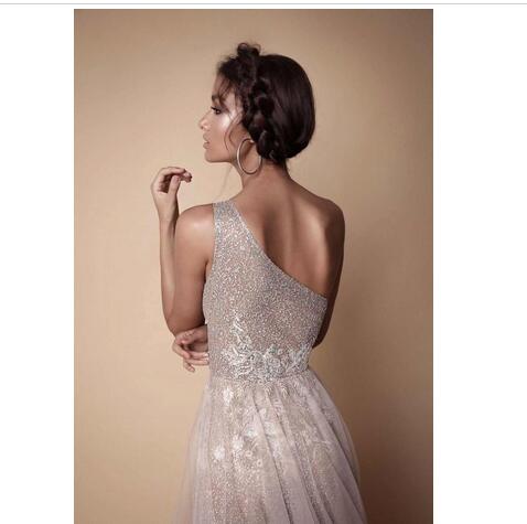 New High Side Split Sequined Wedding Dresses Bohemian One Shoulder Lace Appliqued Bridal Gowns vestido de novia