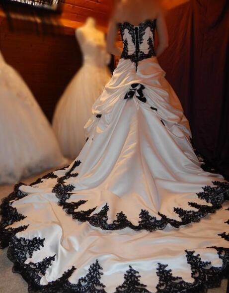 Black and White Wedding Dresses 2019 Gothic Lace Applique Tiered Pageant Bridal Dress Long Back Lace Up Satin Elegant Bridal Wedding Gowns