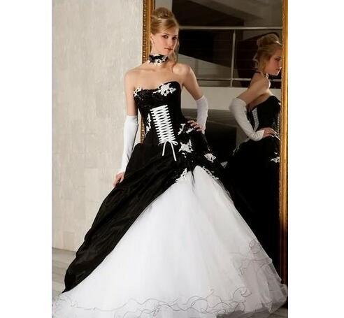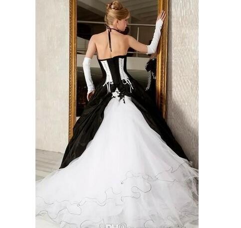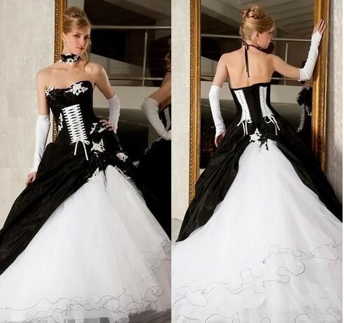 Vintage Black And White Ball Gowns Wedding Dresses 2018 Hot Sale Backless Corset Victorian Gothic Plus Size Wedding Bridal Gowns Cheap