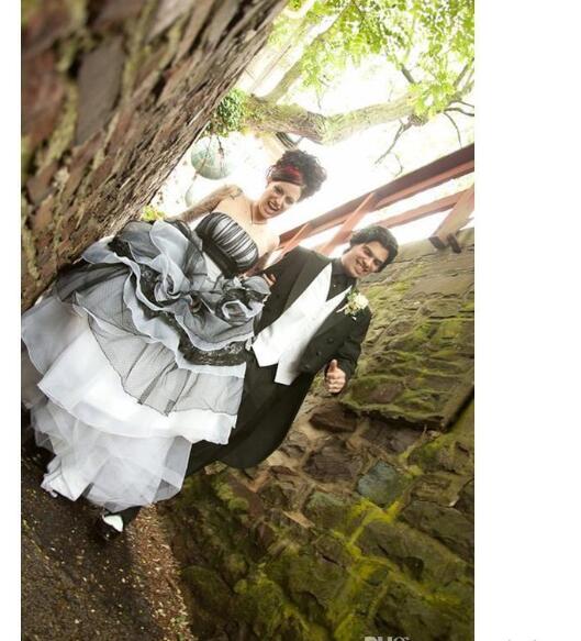 Vintage Black And White Ball Gowns Wedding Dresses 2019 Strapless Polka Dots Corset Victorian Gothic Plus Size Wedding Bridal Gowns Cheap