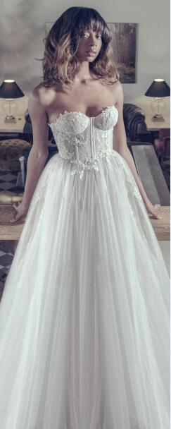 Bohemia Wedding Dresses Sweetheart Lace Appliqued Wedding Bridal Gowns Tulle A Line robes de soirée