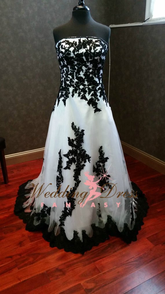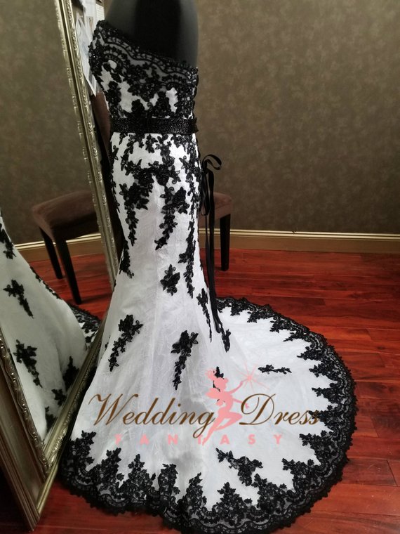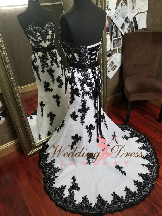 Stunning Black and White Gothic Wedding Dress with Sweetheart Neckline, Unique Wedding Dress, Alternative Bridal Gown with Corset