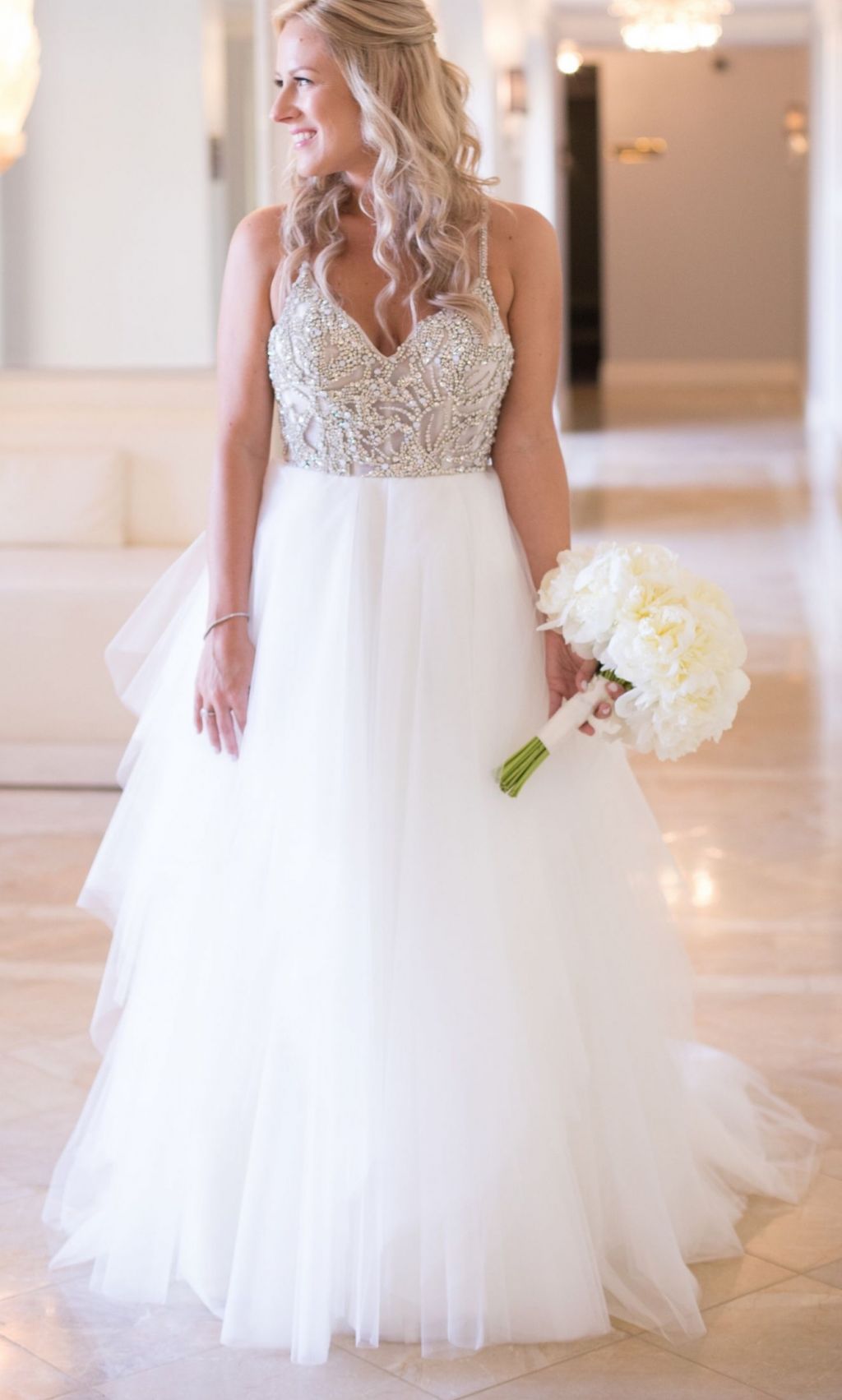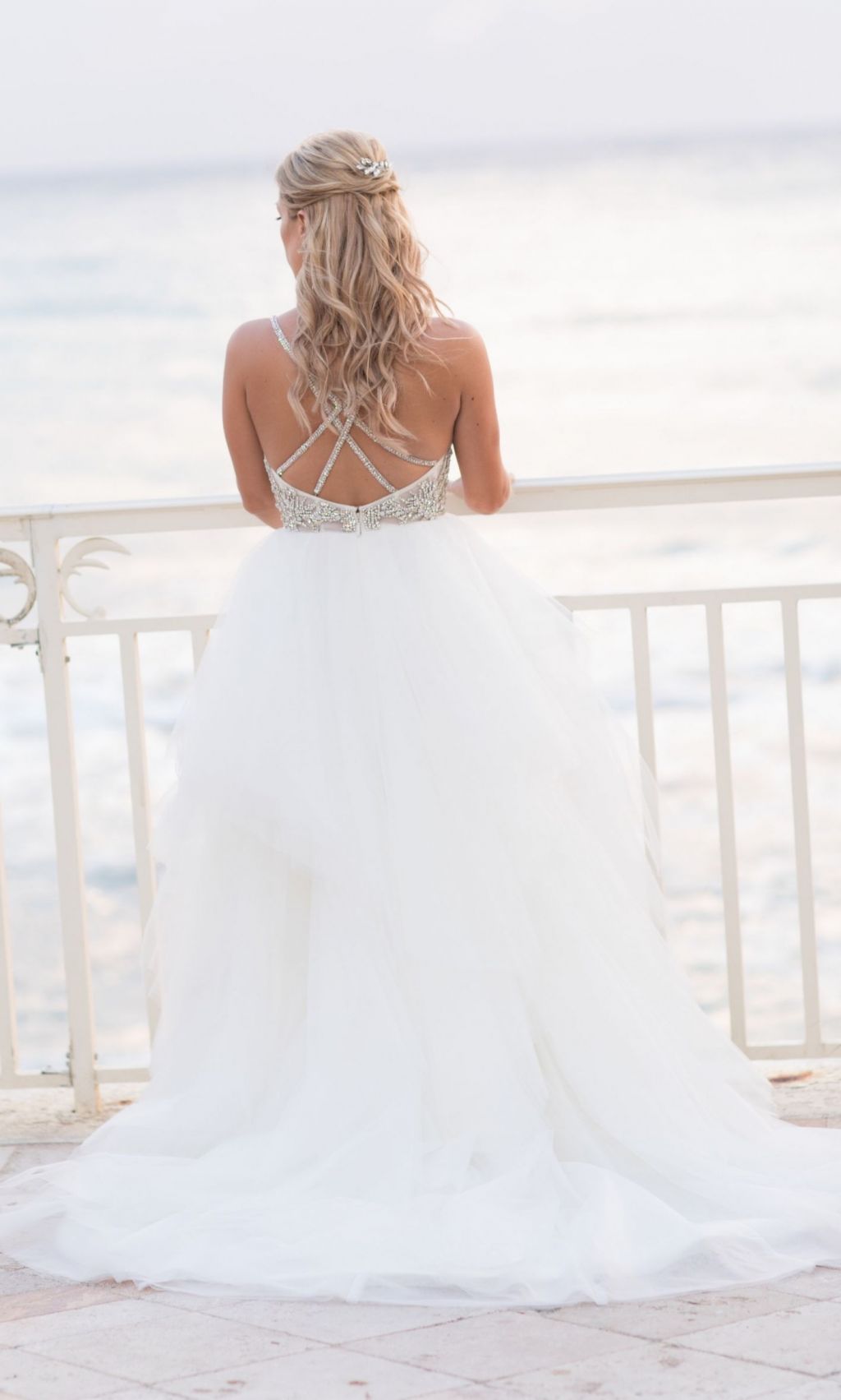 Ball Gown Tulle Wedding Dresses Spaghetti Straps Beading Crystals Puffy Bridal Gowns