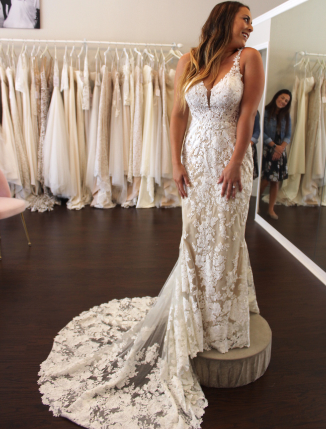 Sexy Mermaid Champagne Lining Wedding Dresses Delicate Lace Bridal Gowns