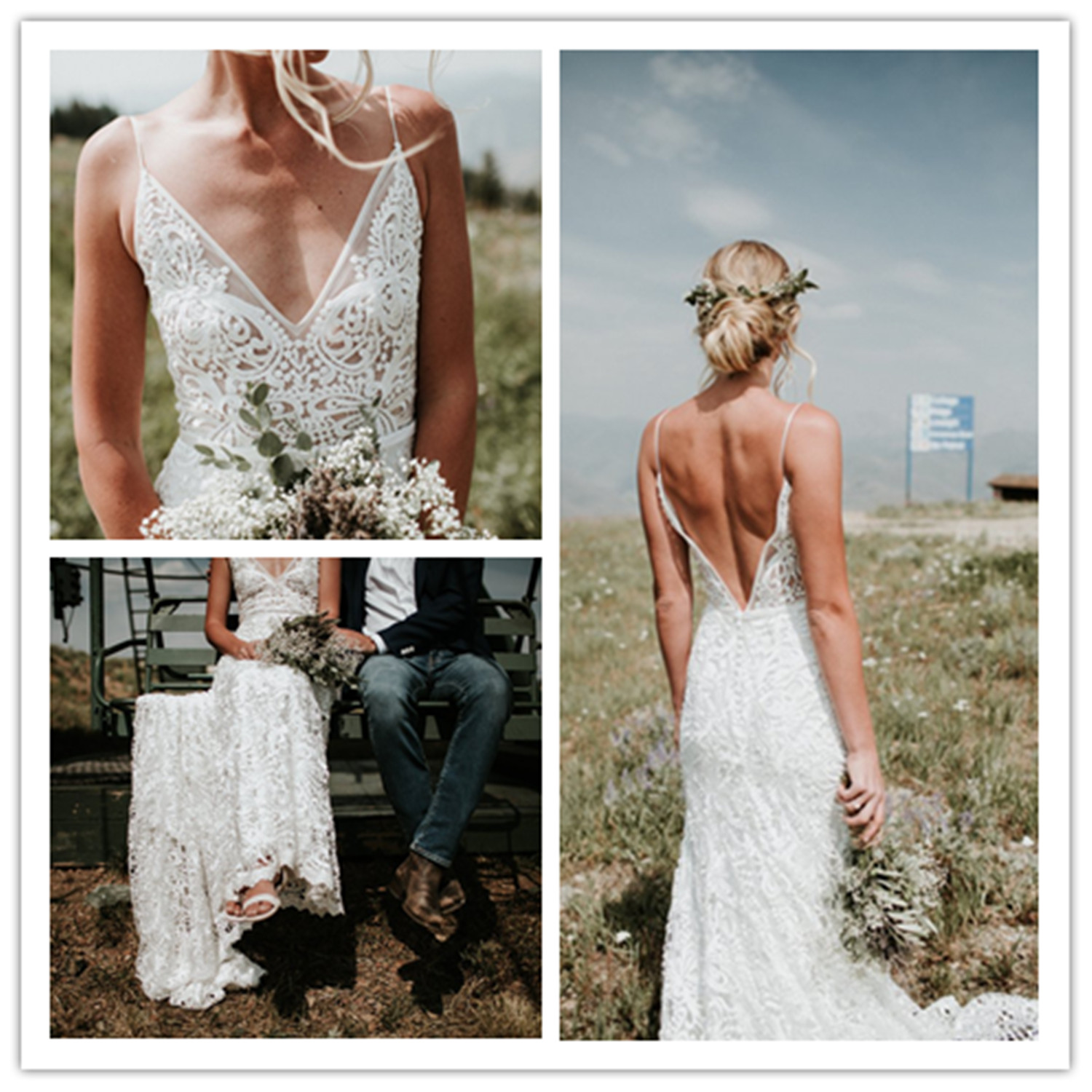 Delicate Lace Mermaid Wedding Dresses Spaghetti Straps Sexy Backless Bridal Gowns