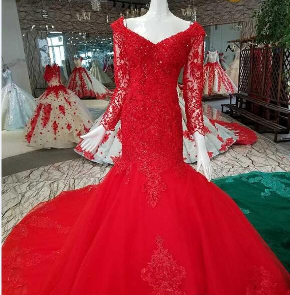 Charming Mermaid Prom Dresses V-Neck Long Sleeve Lace Appliques Sequins Crystals Sexy Back Special Occasion Dresses Sweet Evening Gowns
