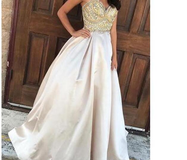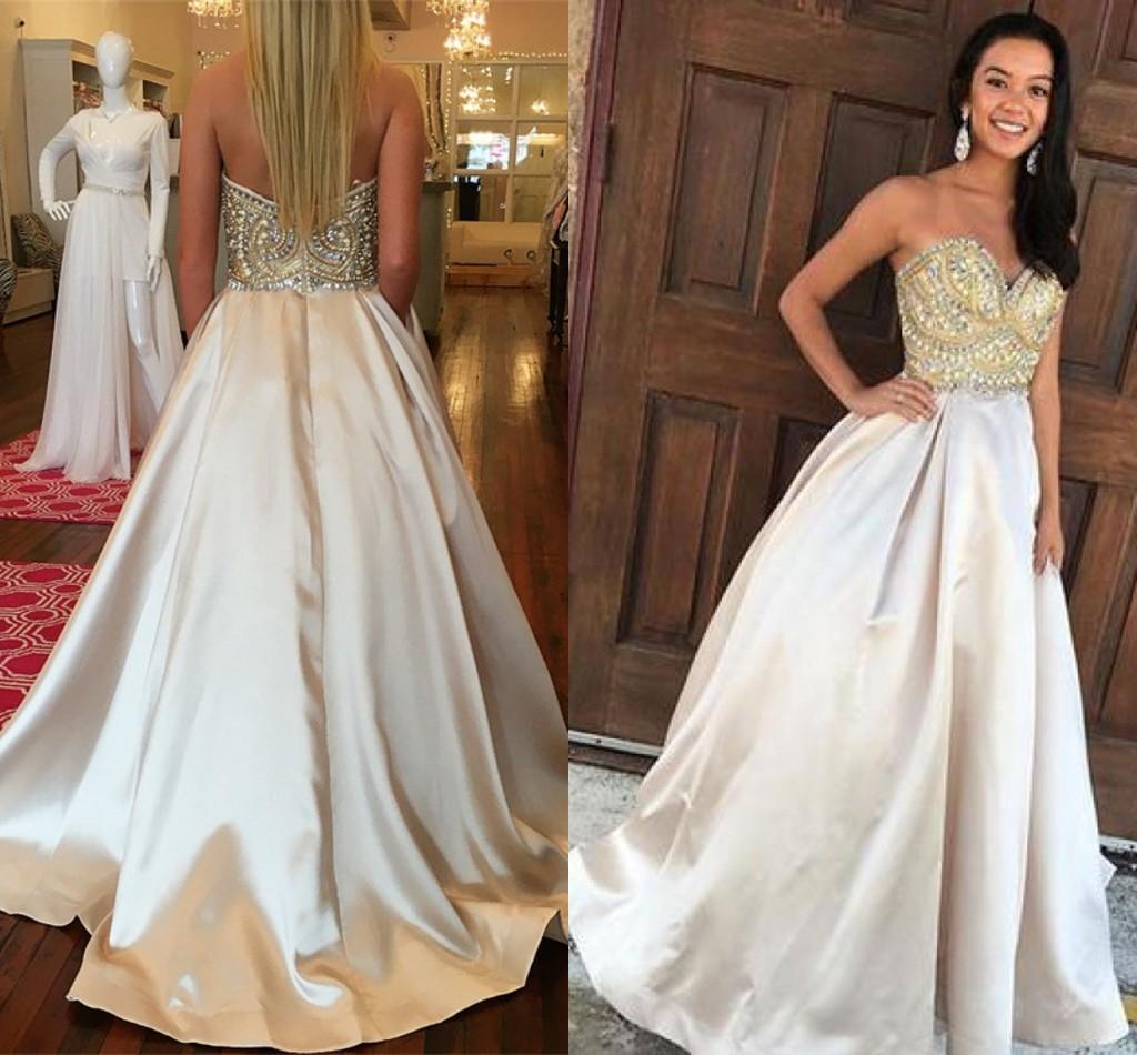 Junoesque Prom Dresses Sweetheart Beaded Strapless Zipper Sweep Train A Line Evening Dresses Prom Gowns