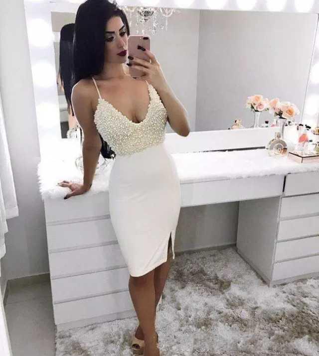 Elegant White Sheath Prom Dresses Scoop Sleeveless Beaded Short Special Occasion Dresses Side Split Sexy Evening Gowns