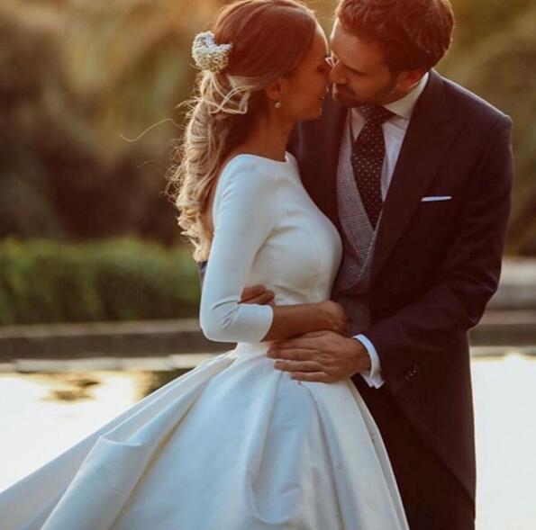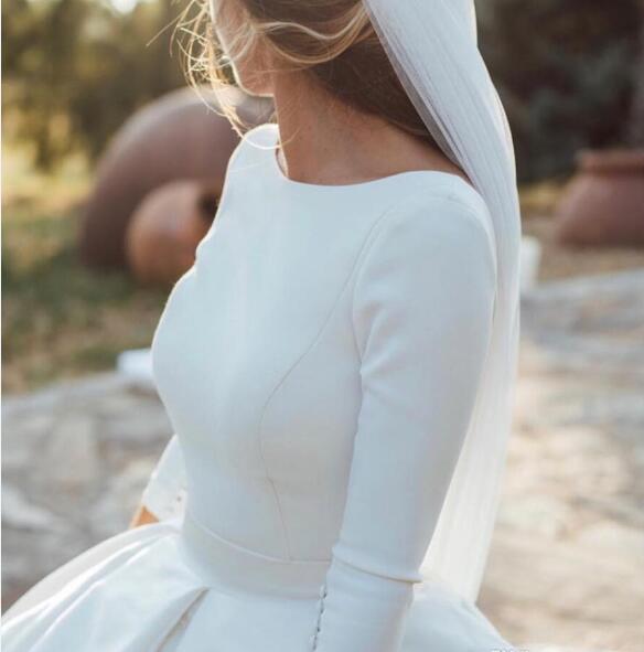 White A Line Wedding Dresses With Long Sleeves Ruched Backless Bridal Dresses Plus Size 2019 Court Train Boho Wedding Gowns For Brides